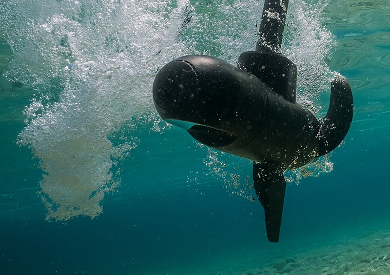 - Hélice Weedless : traverse aisément les zones de végétation sans perte de performance.