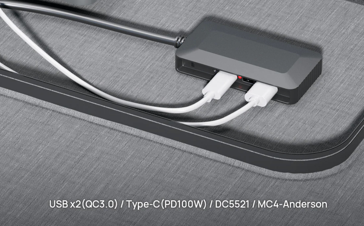 Le panneau solaire dispose de 5 interfaces de sortie :