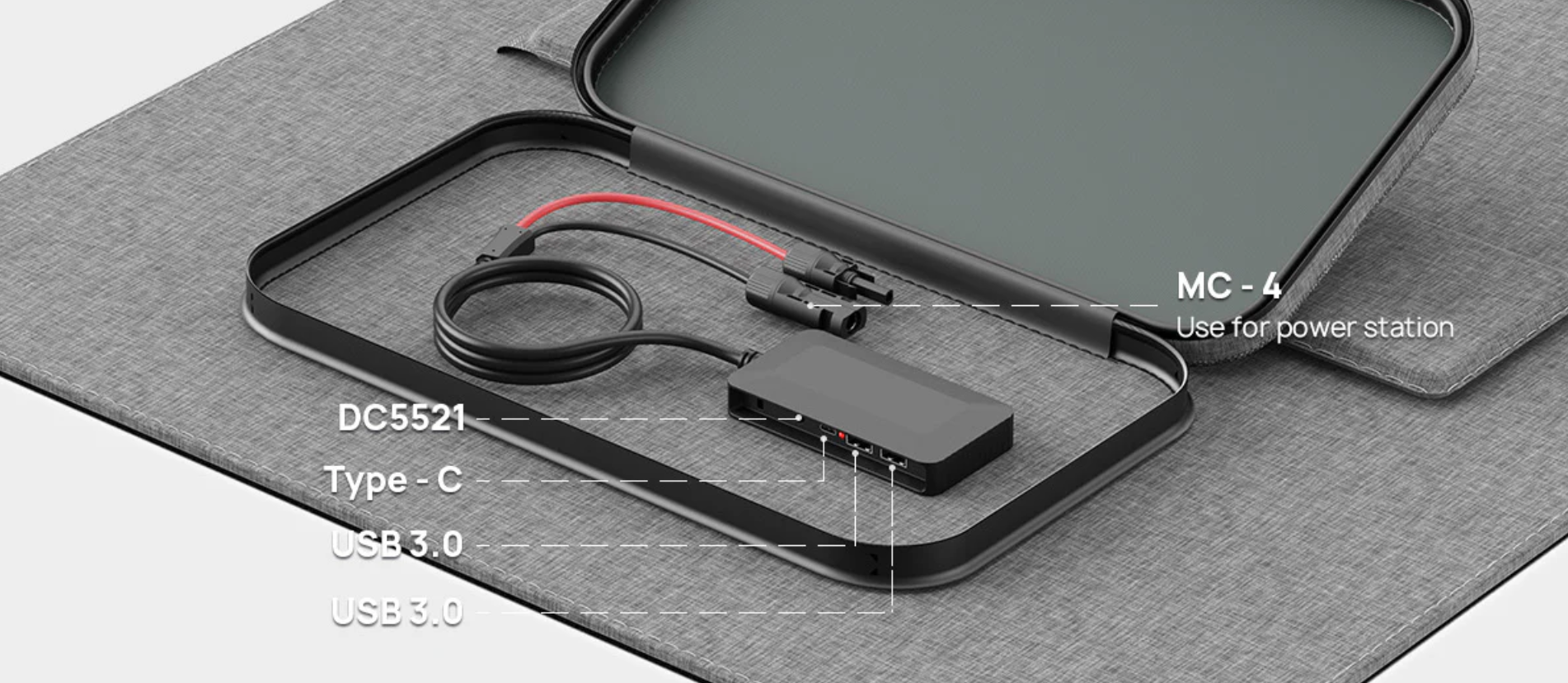 Le panneau solaire dispose de 5 interfaces de sortie :