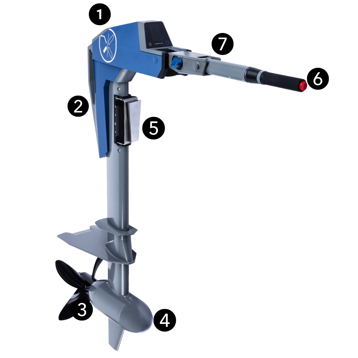 L'hélice à haut rendement, conçue sur mesure, est fabriquée à partir d'aluminium durable de qualité marine. Livré avec un accélérateur à résistance réglable, un bouton de sécurité pour le déverrouillage et l'inversion du sens de rotation et une interface de montage à dégagement rapide personnalisée.
